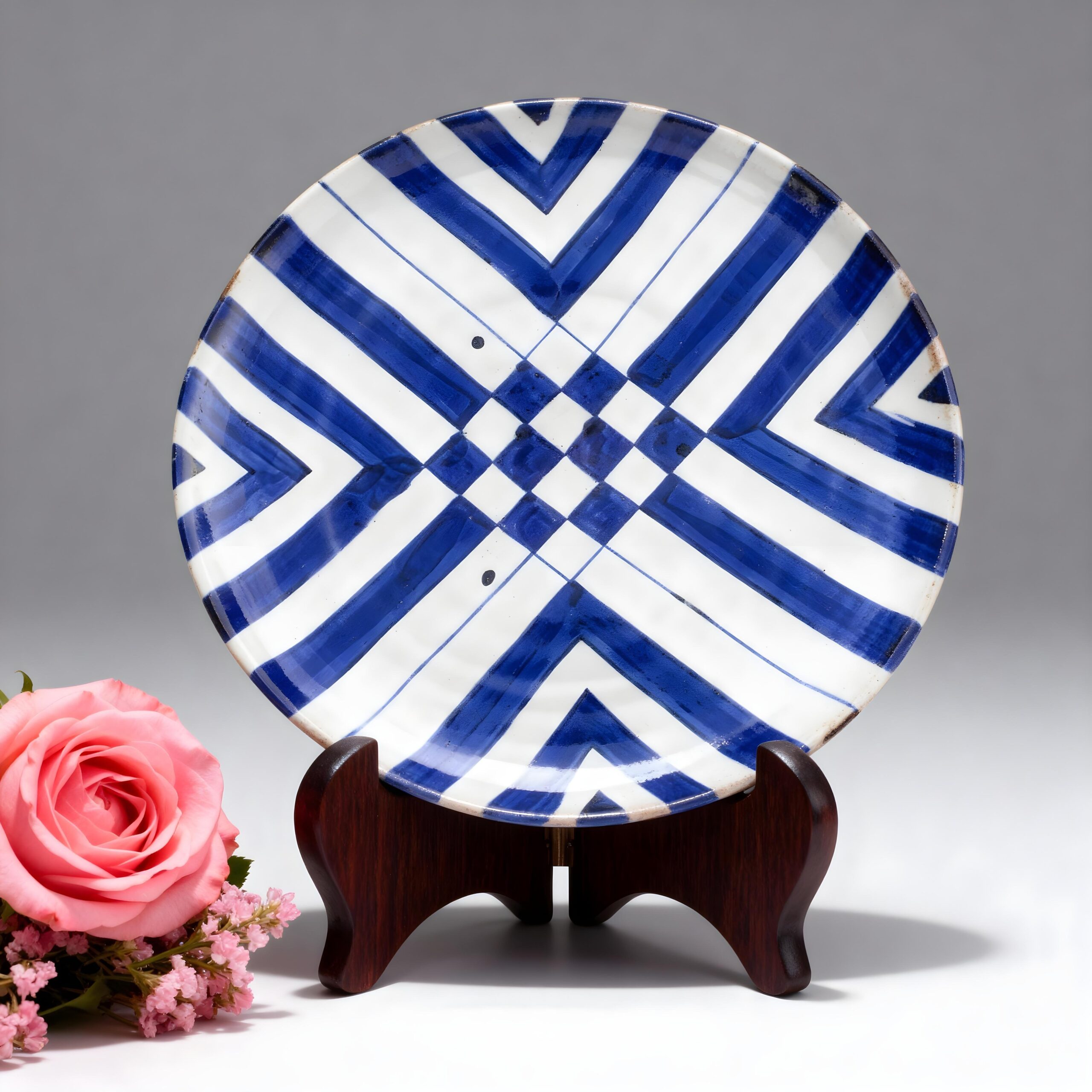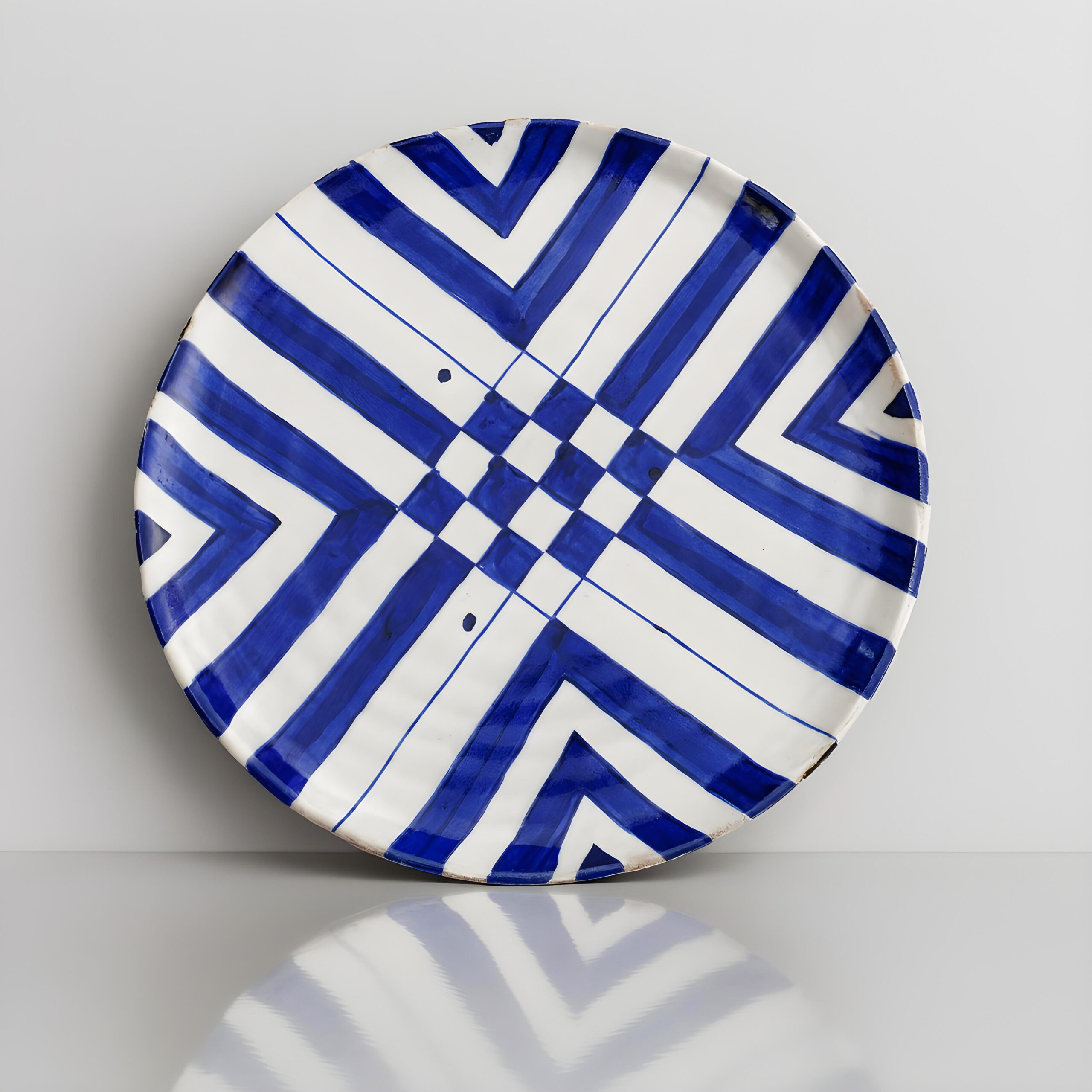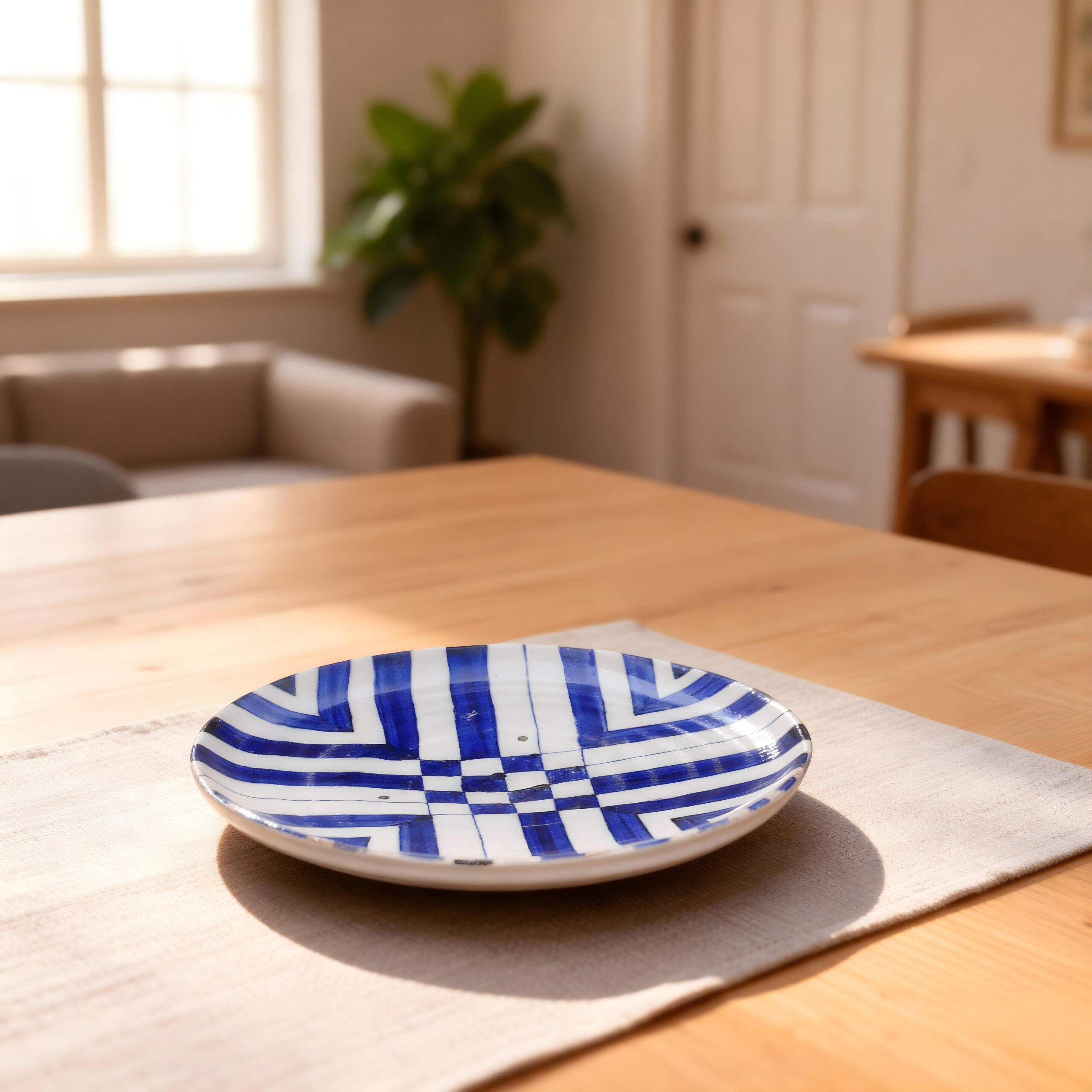 12″ Handmade Ceramic Check Pattern Plate HP-1071