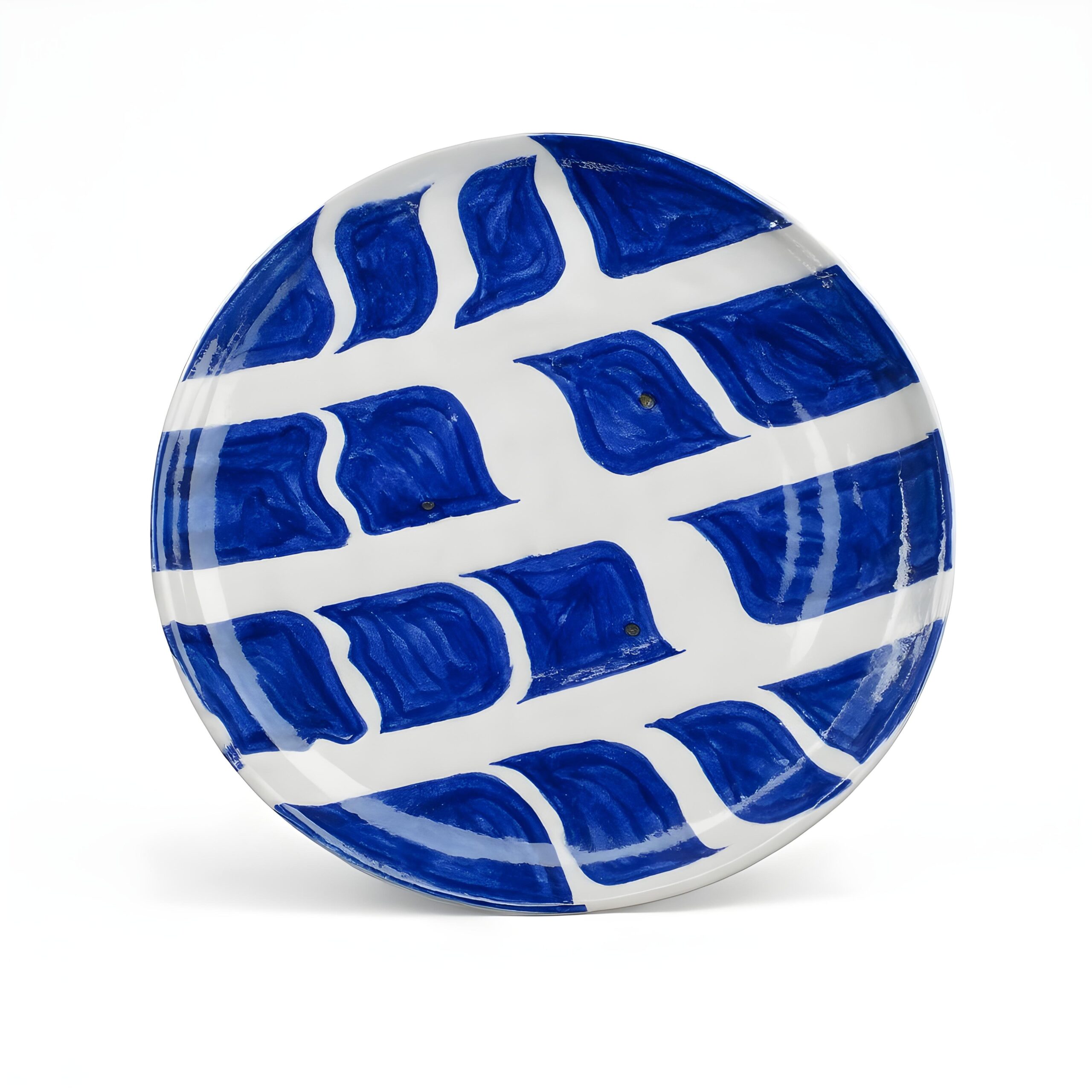 • Striking Modern Design: Features a bold, minimalist pattern of hand-painted blue stripes.