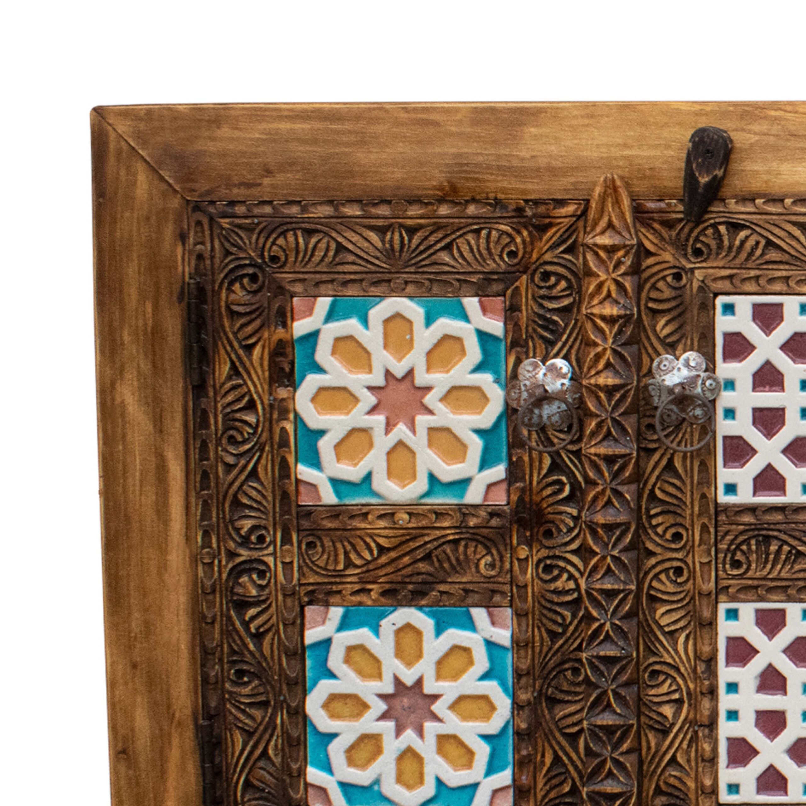 Add a special and beautiful piece to your home with this hand-carved wooden tile cabinet from Virsa Homes.