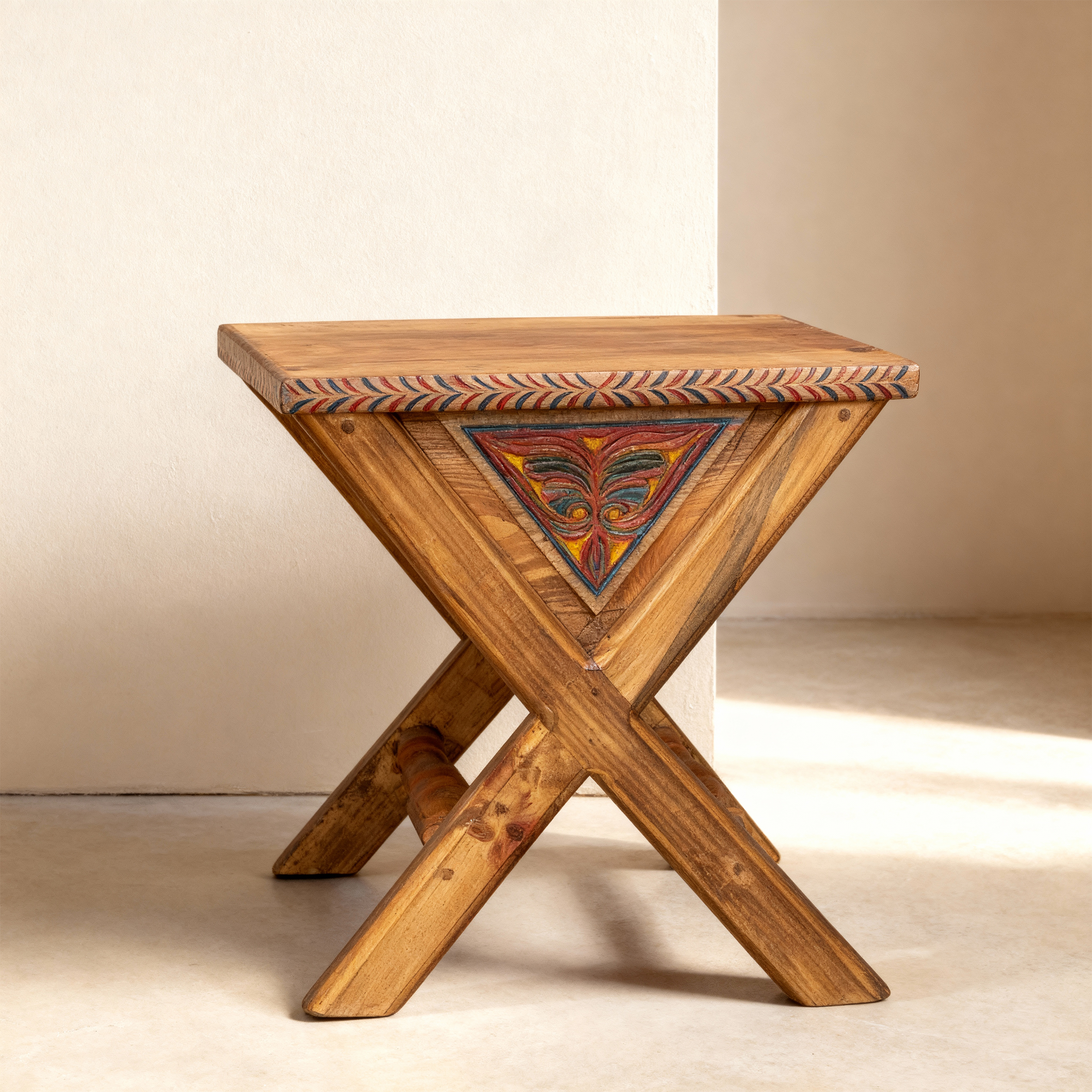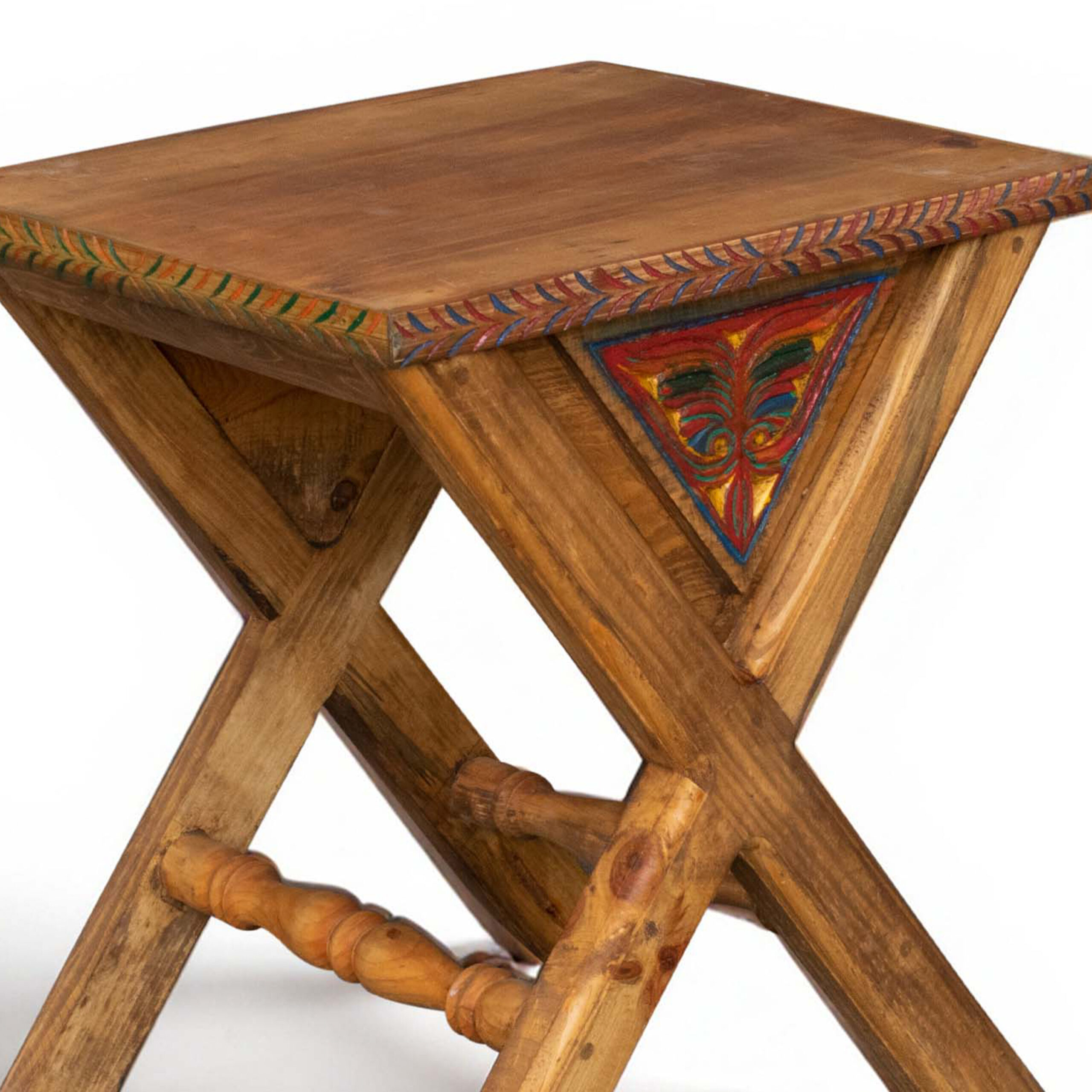 Made from strong, ethically sourced natural cedar wood, this piece is built to last and designed to impress. It is perfect for the modern & luxury home. Our talented artisans carve every detail by hand, making each table a unique work of art. The classic ‘X-frame’ design is beautifully crafted and accented with colorful, hand-painted details on the sides and edges.