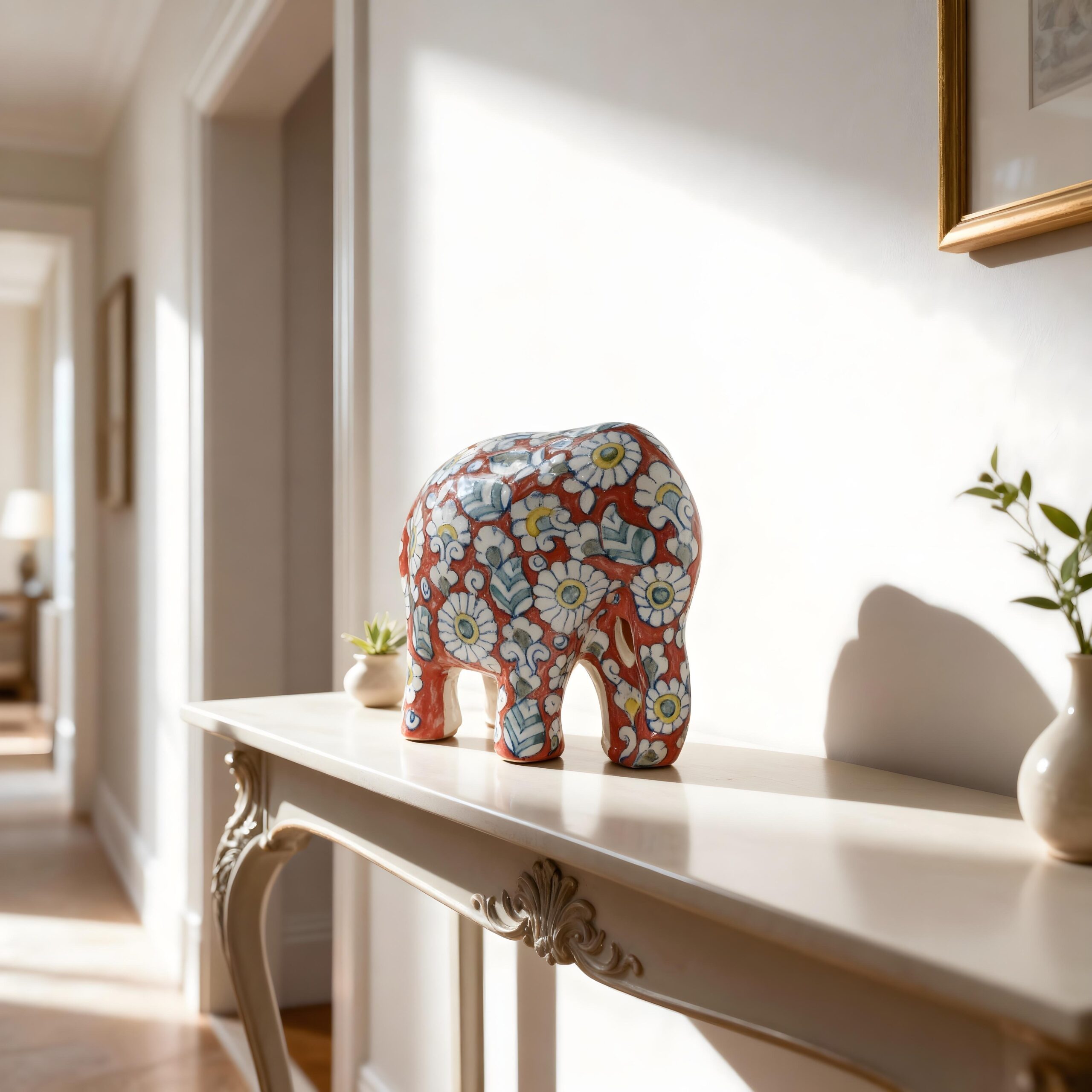 This beautiful elephant fits well in many luxury homes. Its artistic and cheerful design makes it a perfect addition to any room that needs a touch of personality and charm.