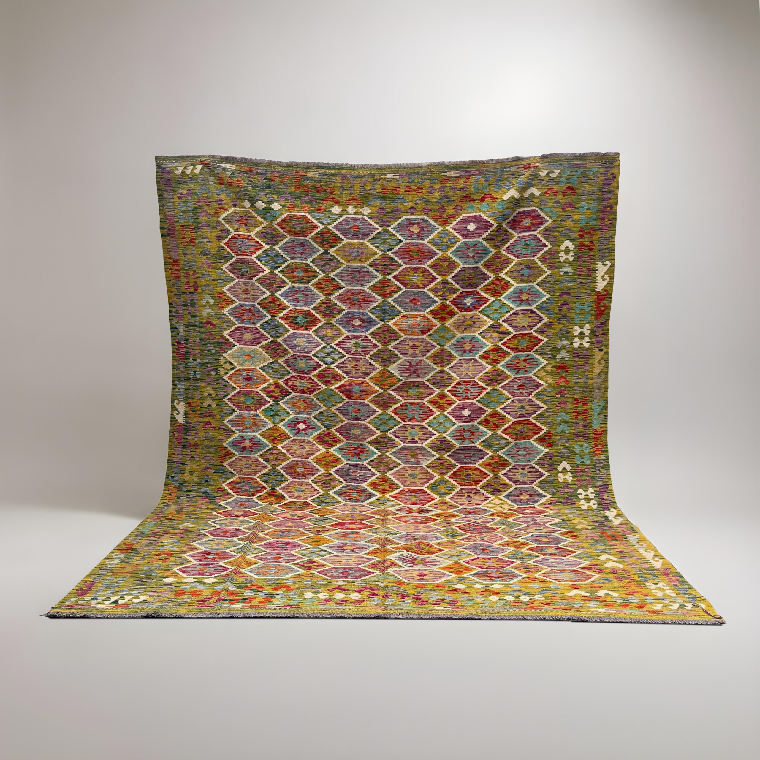Bring the beauty of Afghan culture into your home with our Handwoven Afghan Kilim. Each piece is carefully made by skilled artisans with love, patience, and tradition. These rugs are more than just floor coverings they carry stories of heritage and beauty, passed down through generations.