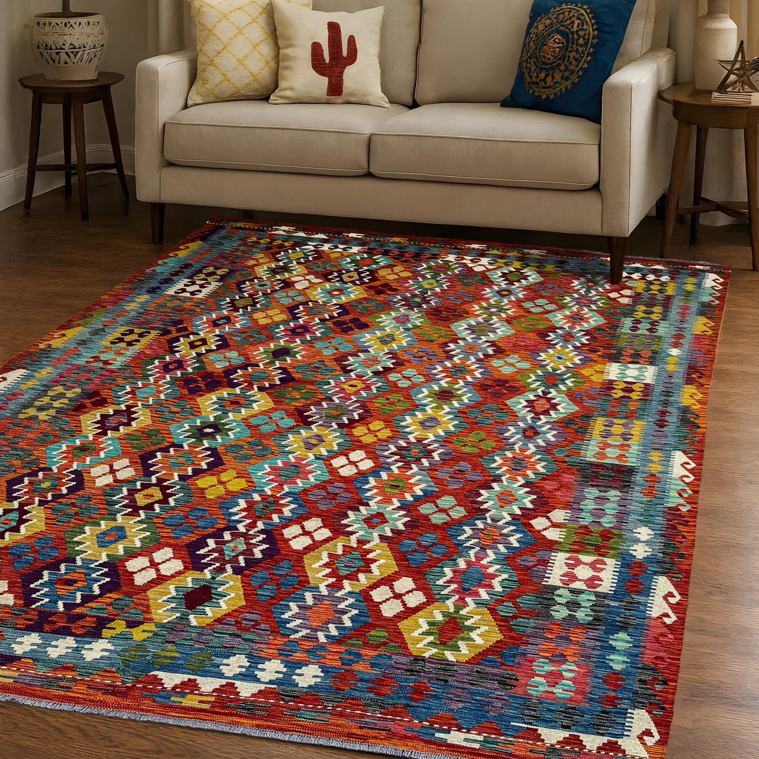 Bring the beauty of Afghan culture into your home with our Handwoven Afghan Kilim. Each piece is carefully made by skilled artisans with love, patience, and tradition. These rugs are more than just floor coverings they carry stories of heritage and beauty, passed down through generations.