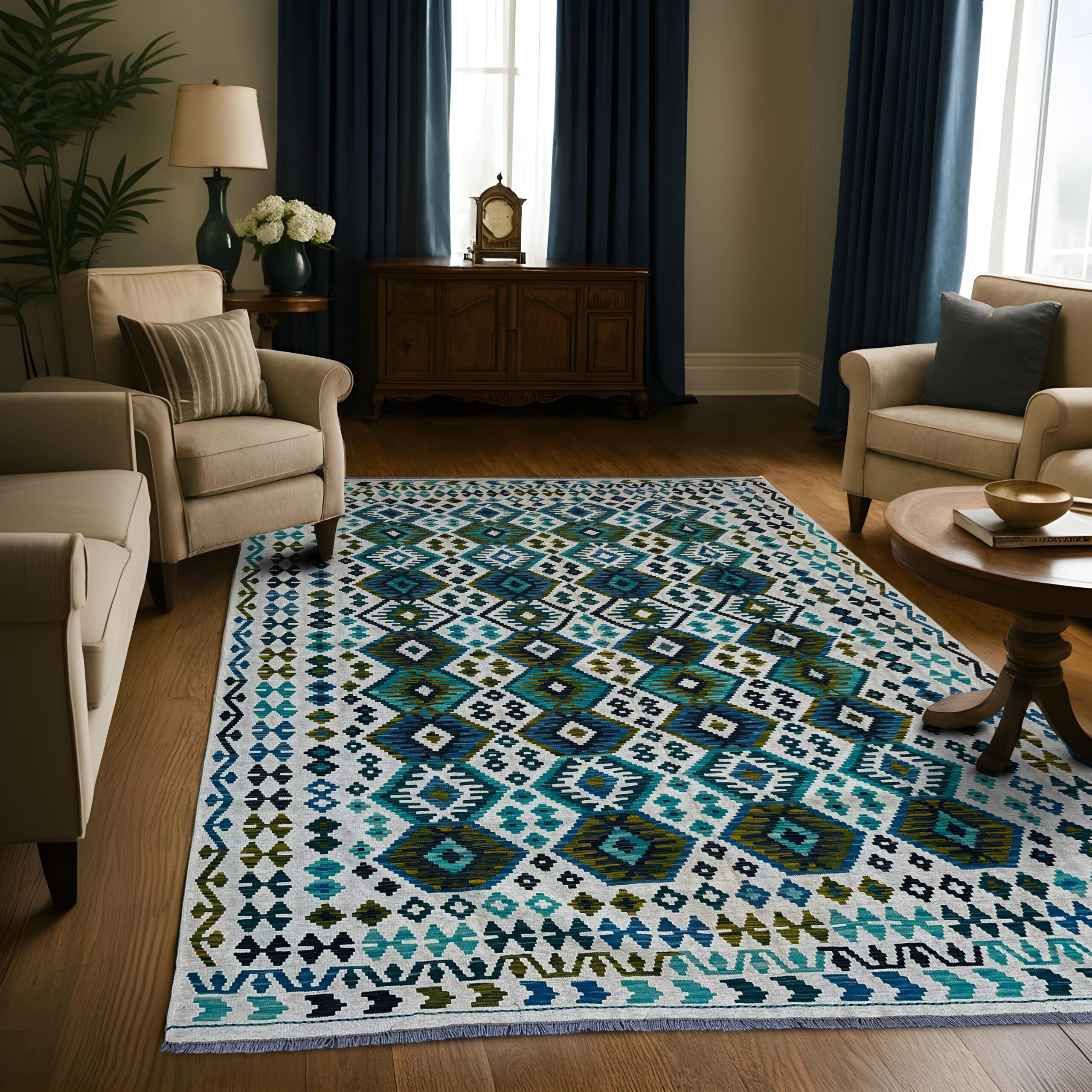 Bring the beauty of Afghan culture into your home with our Handwoven Afghan Kilim. Each piece is carefully made by skilled artisans with love, patience, and tradition. These rugs are more than just floor coverings they carry stories of heritage and beauty, passed down through generations.