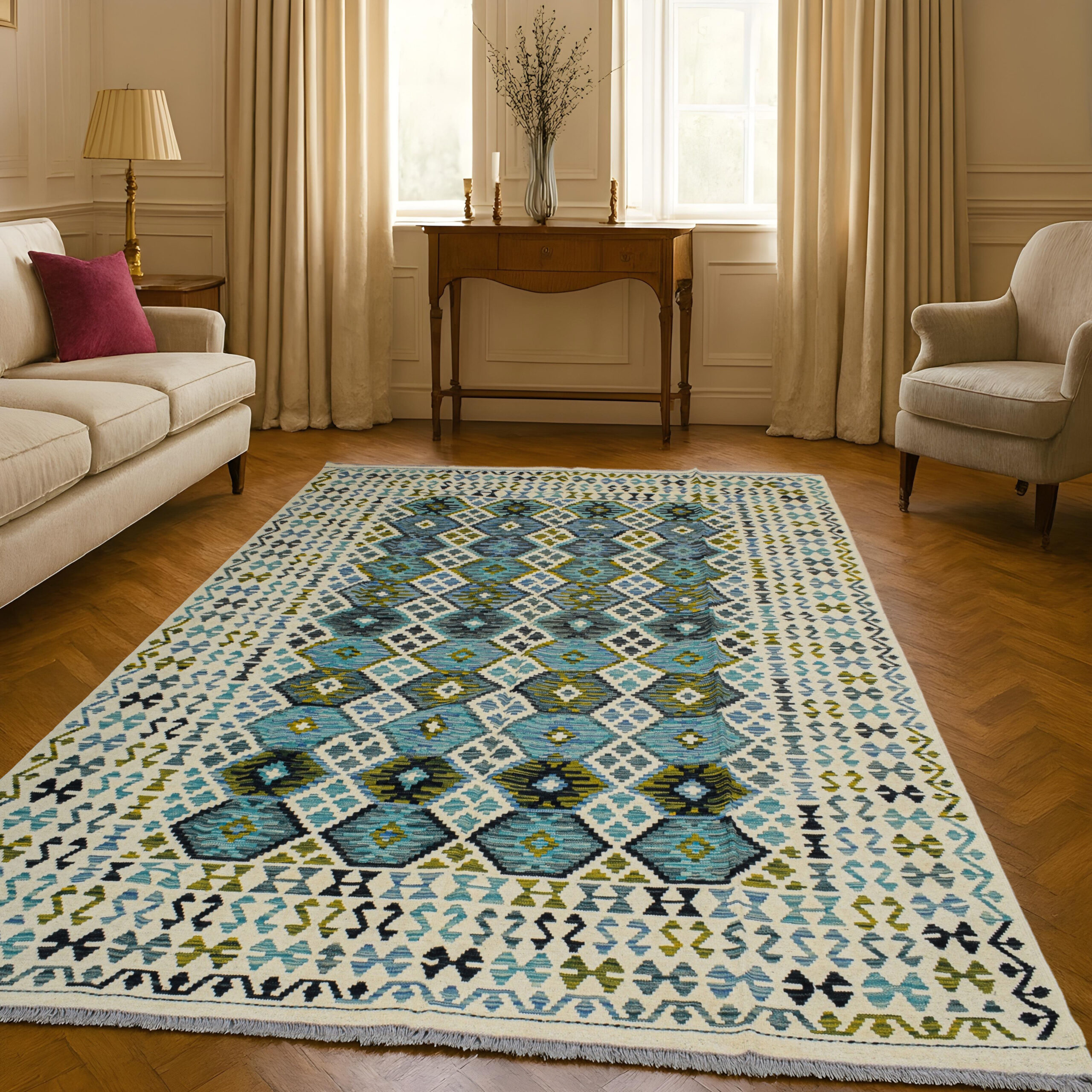 Bring the beauty of Afghan culture into your home with our Handwoven Afghan Kilim. Each piece is carefully made by skilled artisans with love, patience, and tradition. These rugs are more than just floor coverings they carry stories of heritage and beauty, passed down through generations.