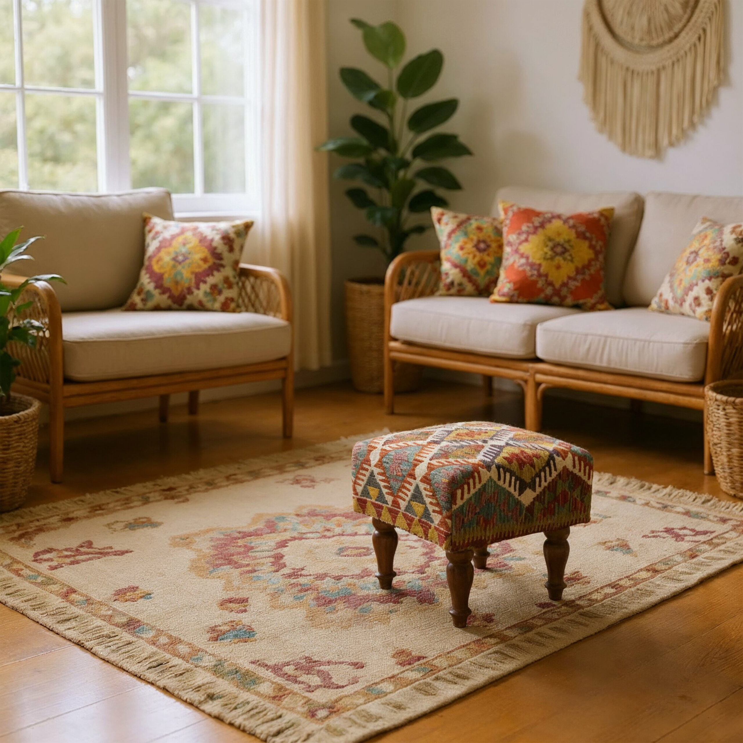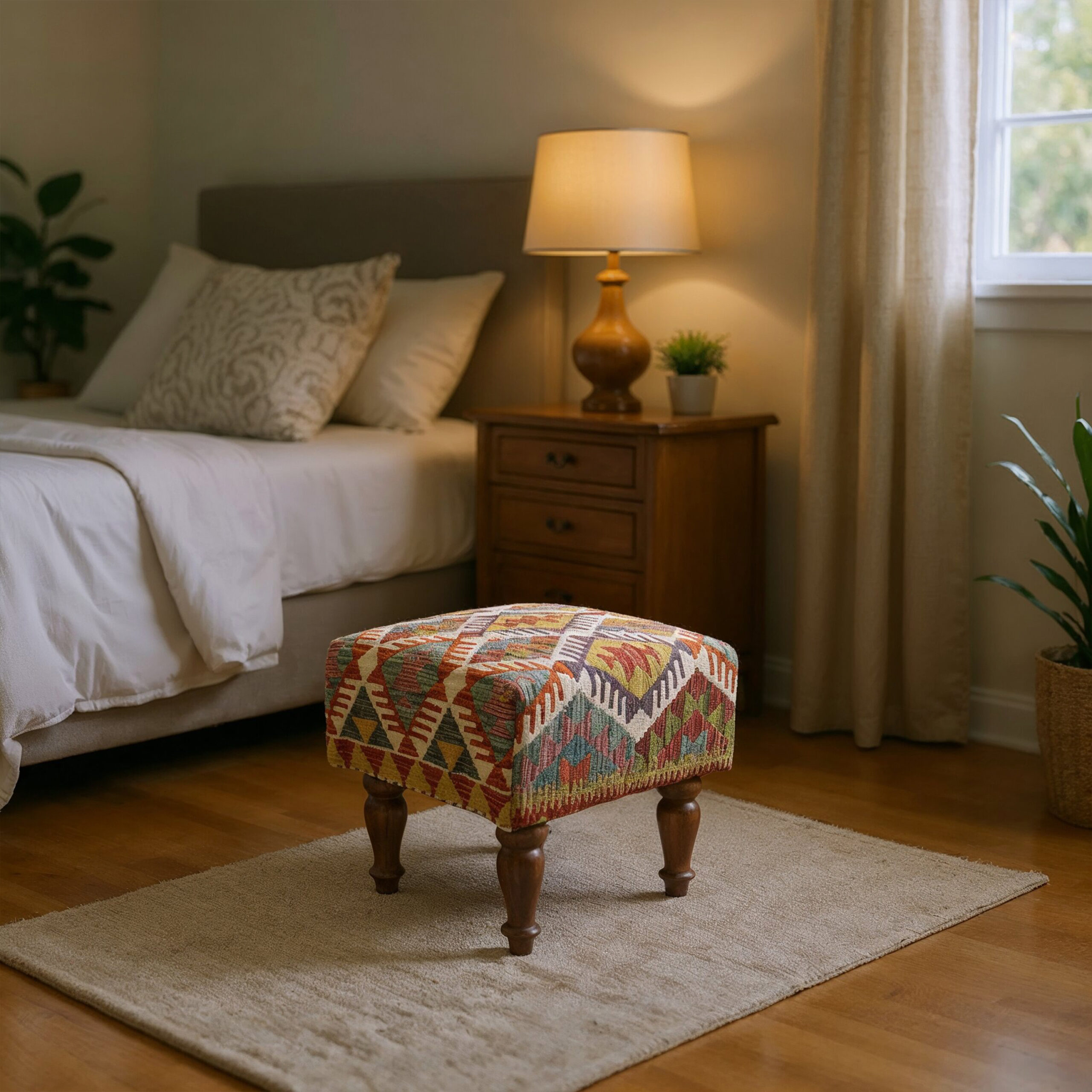 • Authentic Kilim Fabric: Features a colorful, durable, and handwoven Kilim top.
