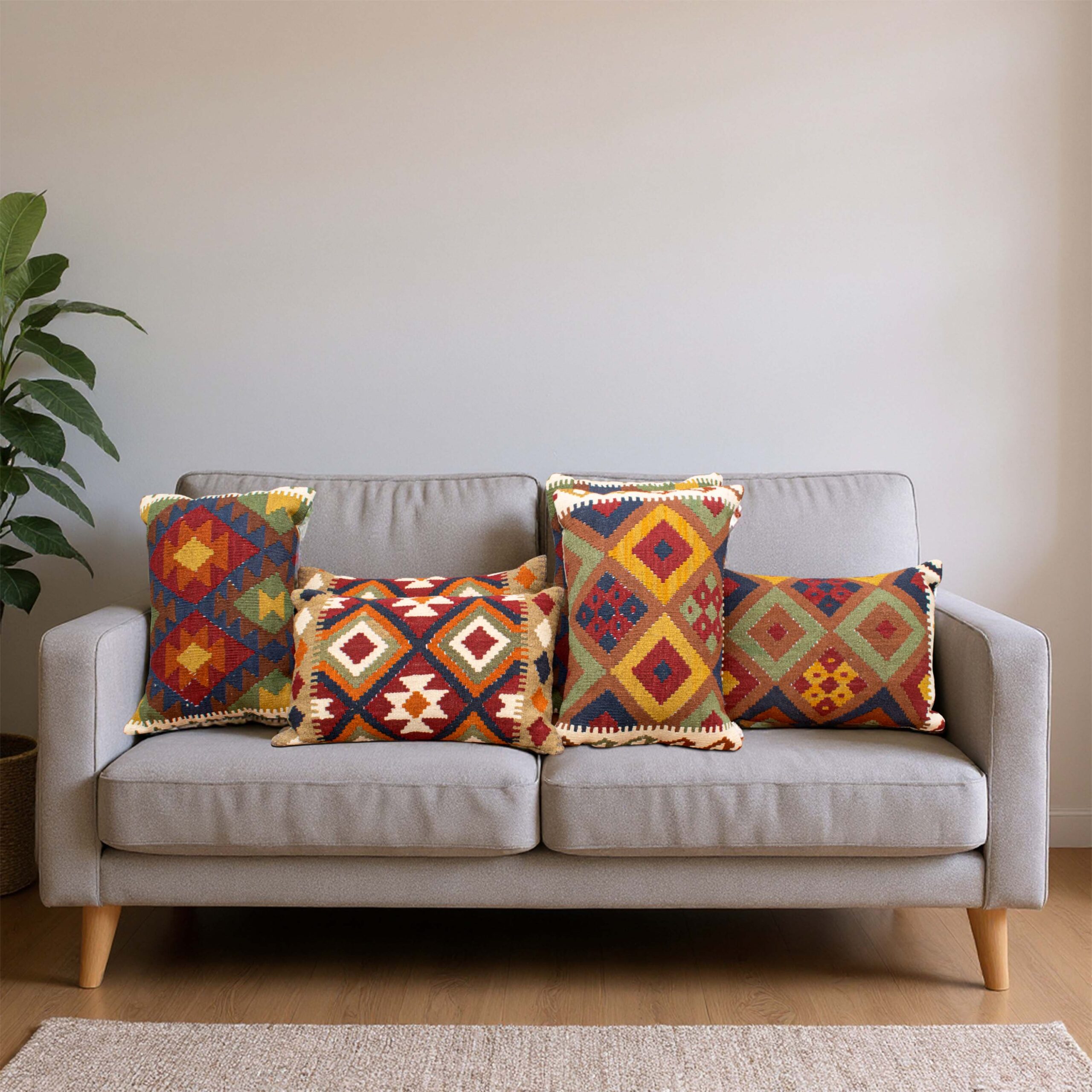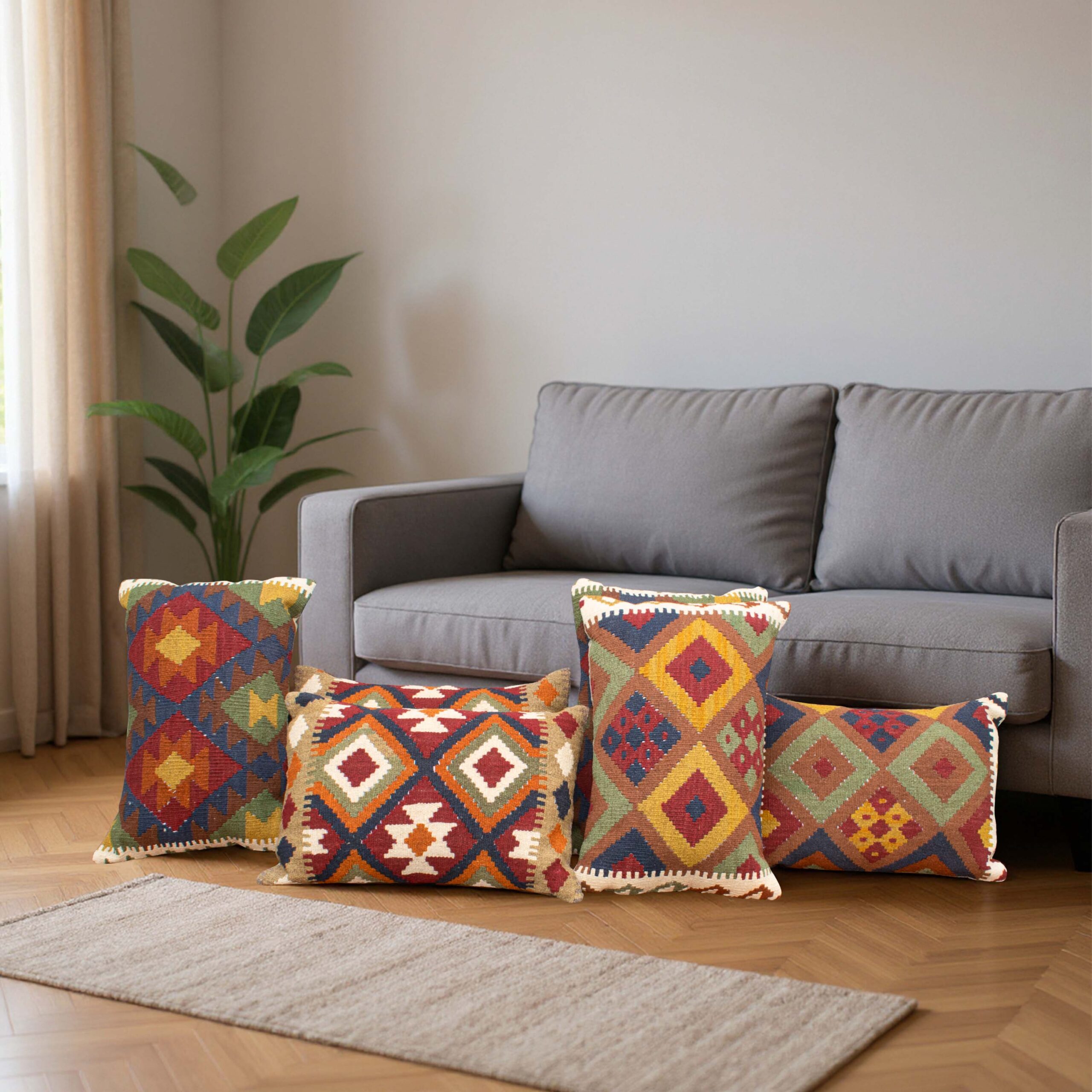 Add a special and beautiful piece to your home with this authentic, handmade wool Kilim cushion from Virsa Homes.