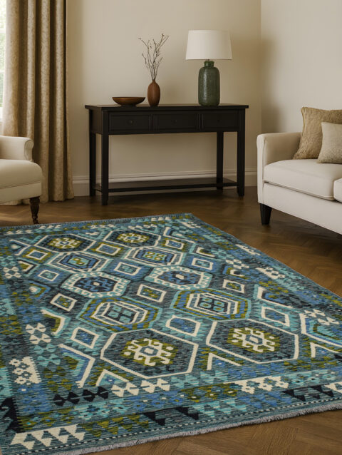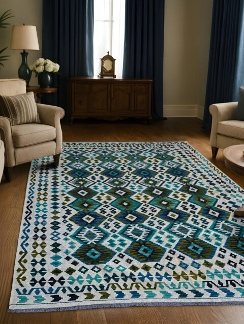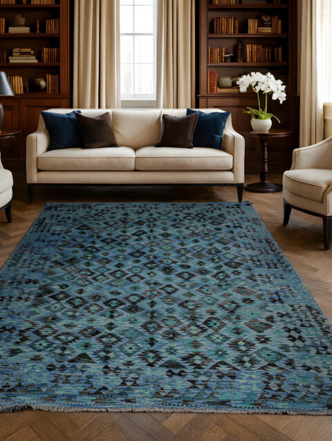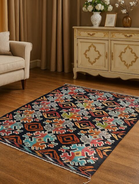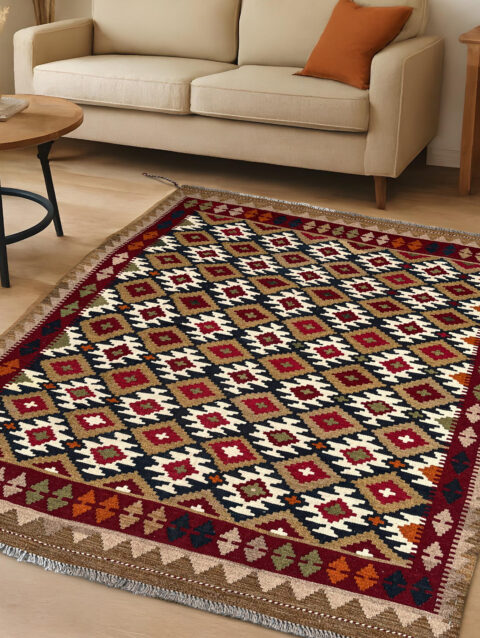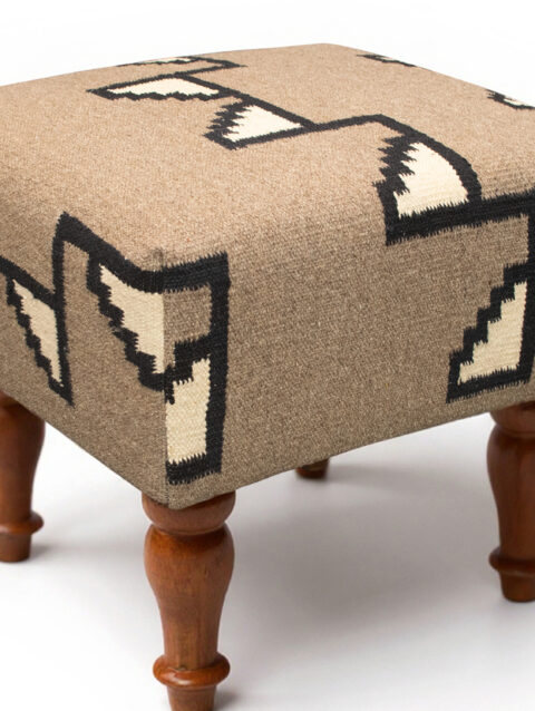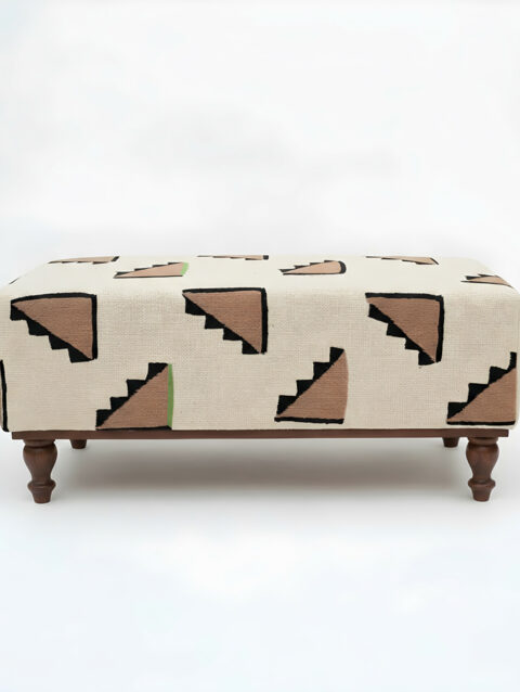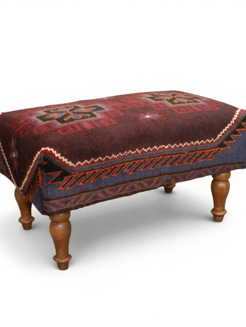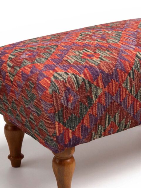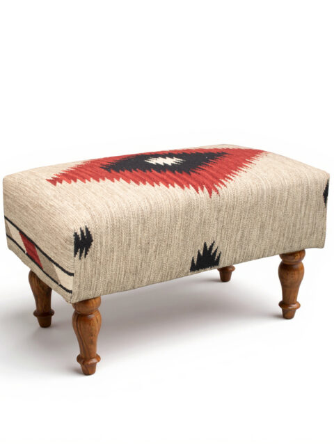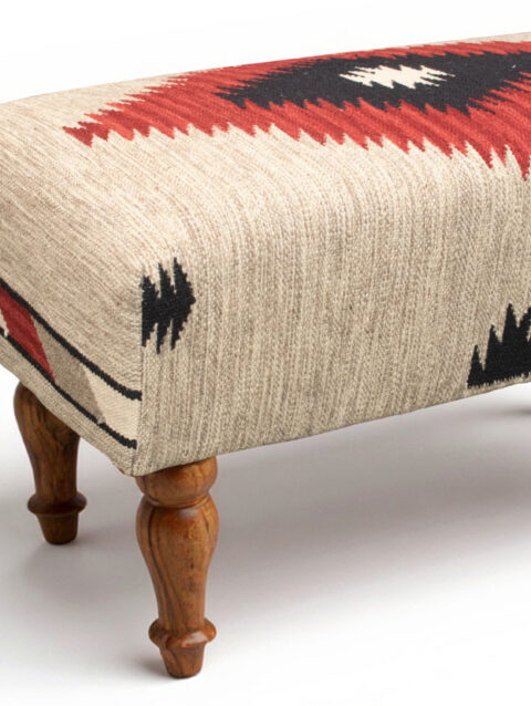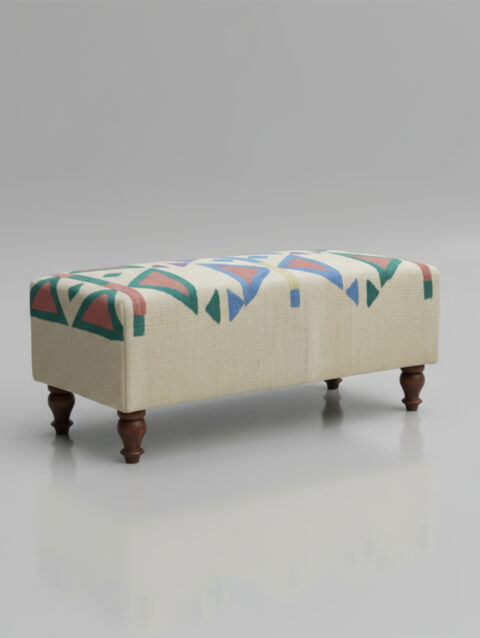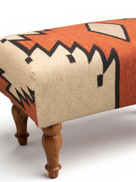 Handmade Wooden Ottoman Bench Upholstered with Geometric Flatweave Rug – OS-1115
