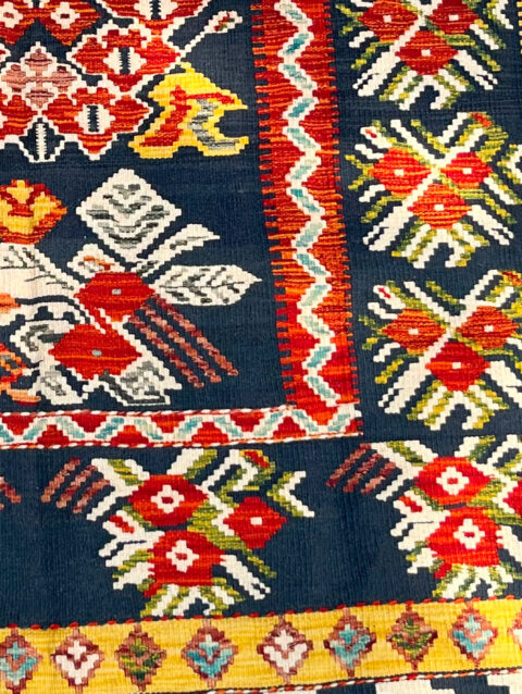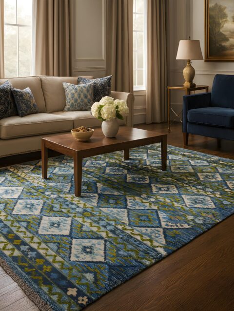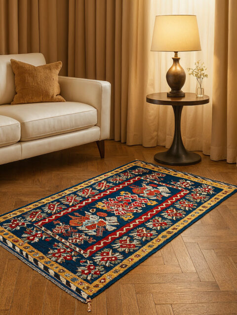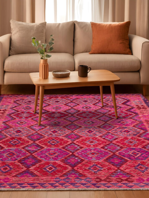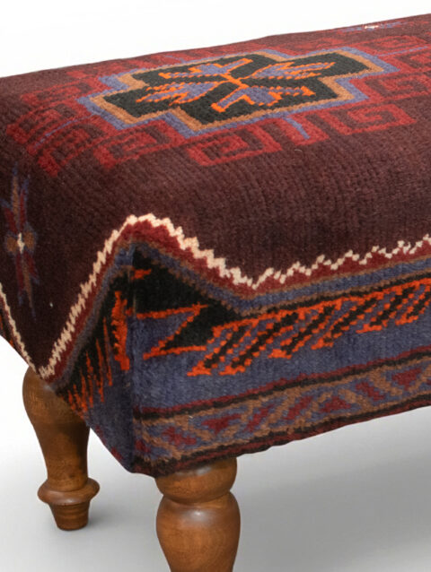Handmade Wooden Bench with Geometric Rug Upholstery – OS-1114