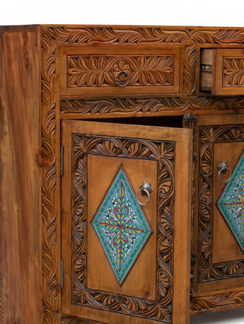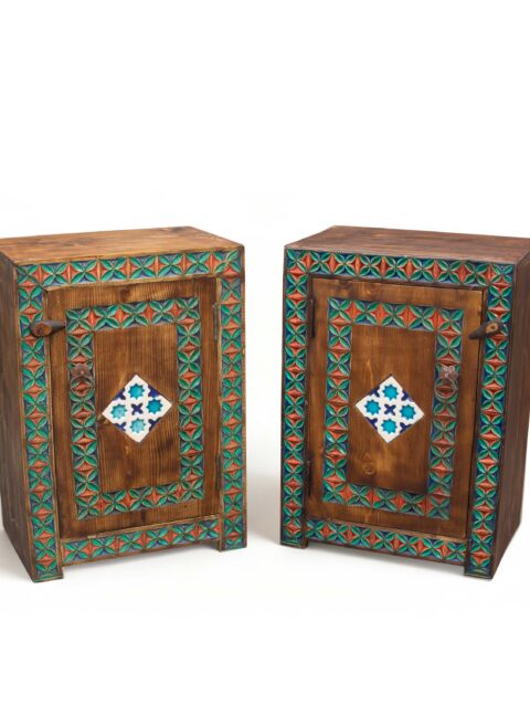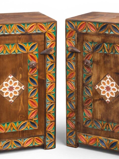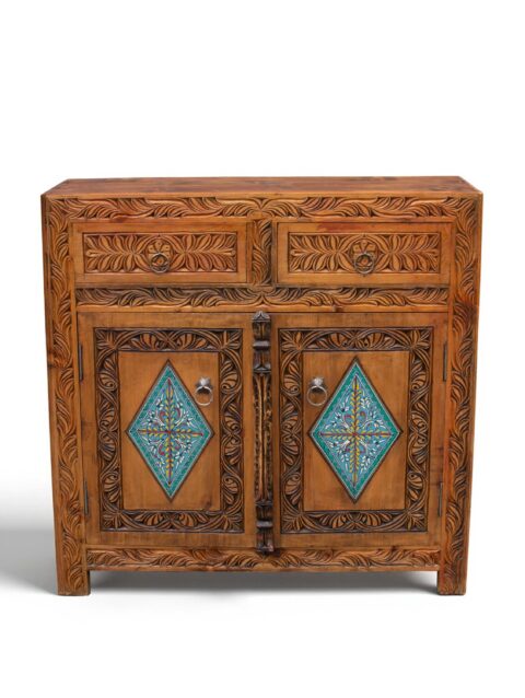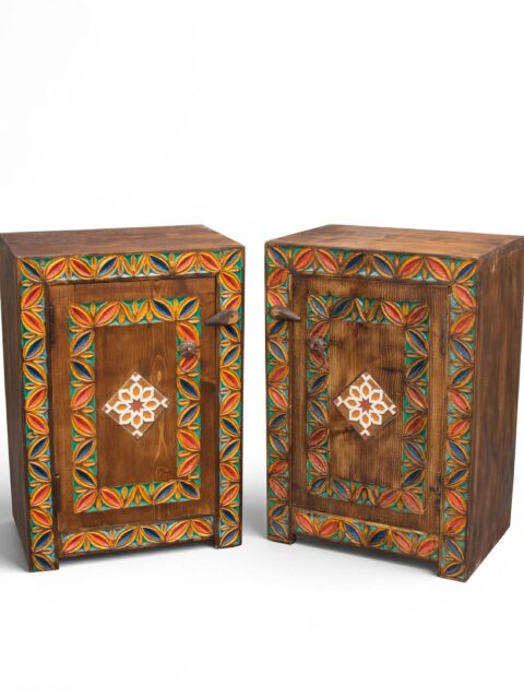 Handmade Wooden Side Cabinet with Painted Carvings WC-1009