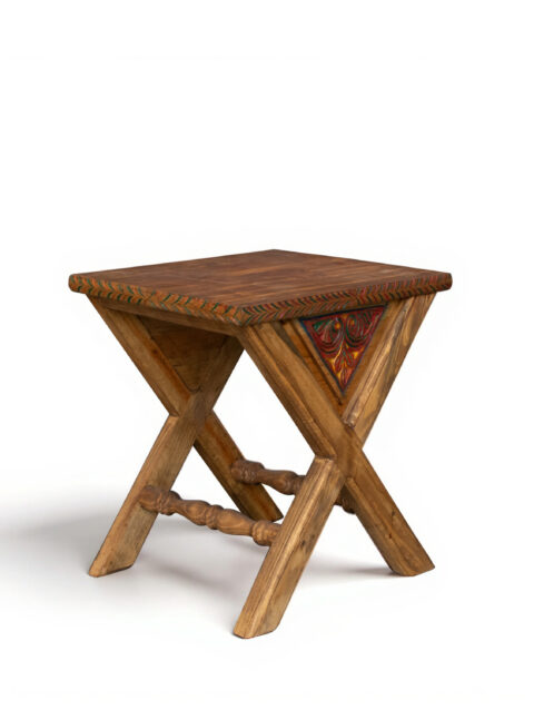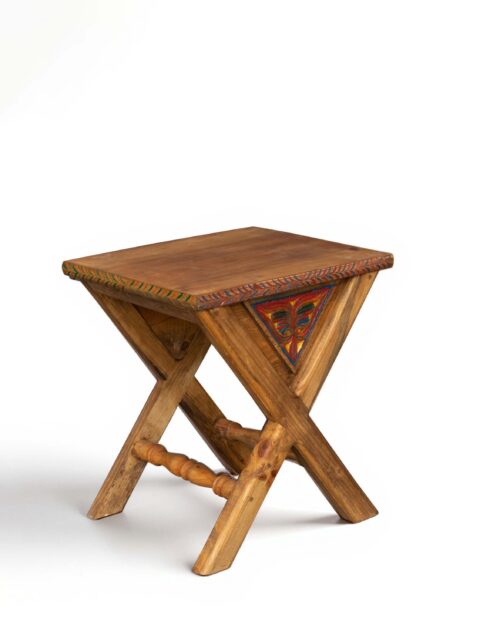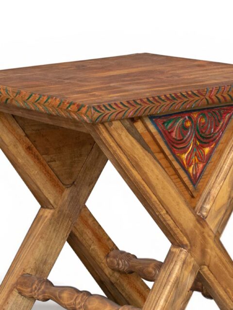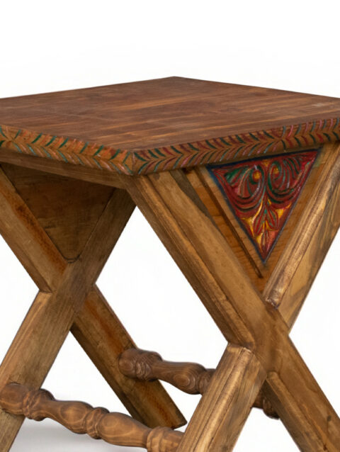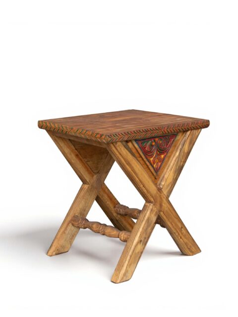 Hand-Carved Wooden X-Frame Side Table XT-1024