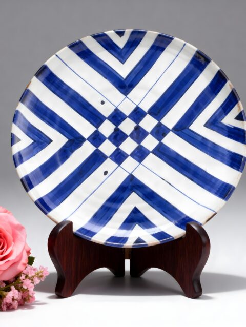 12″ Handmade Ceramic Check Pattern Plate HP-1071