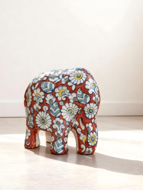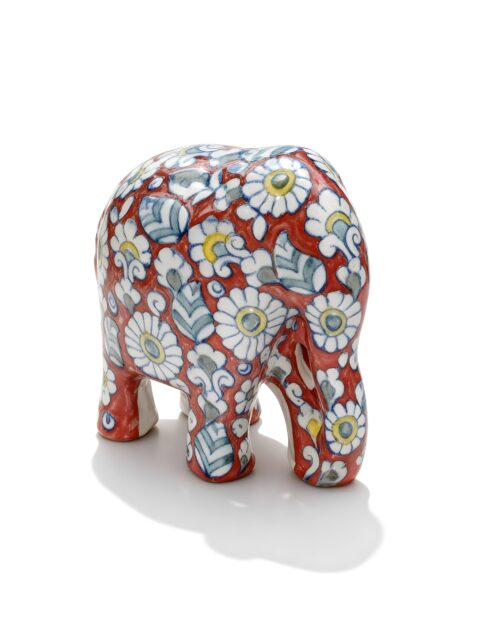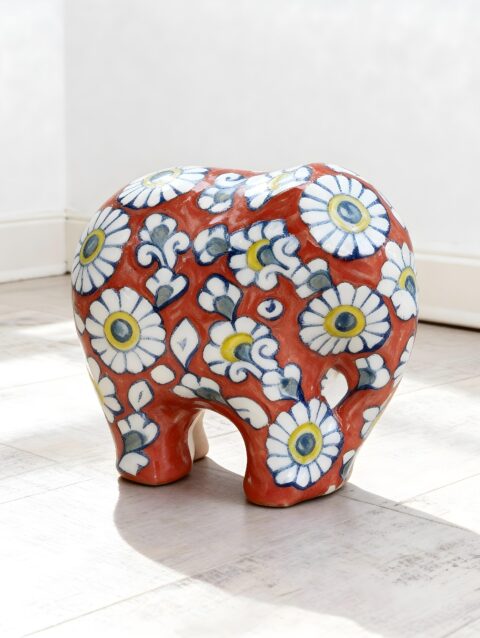 Hand Painted Ceramic Red Floral Elephant Statue HP-1058