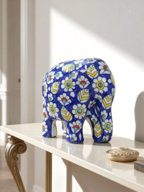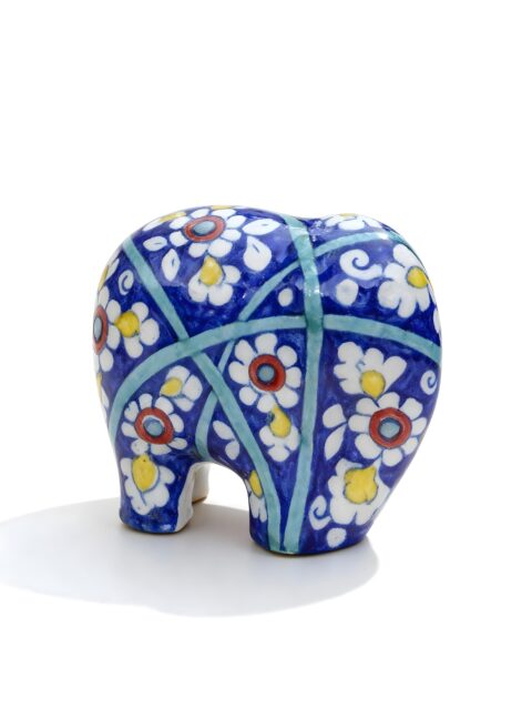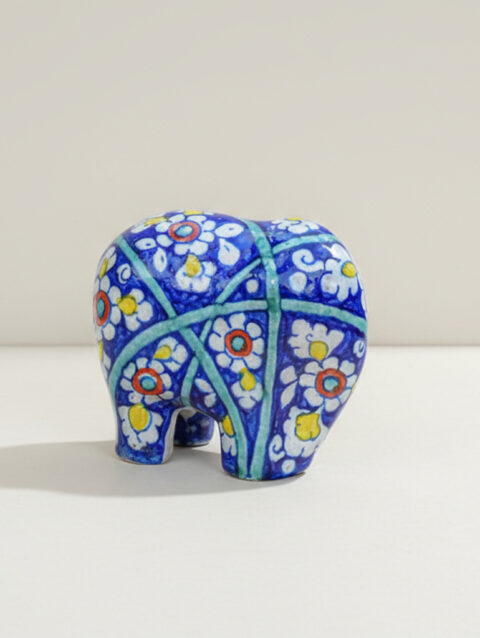 Hand Painted Ceramic Blue Floral Elephant Statue HP-1057