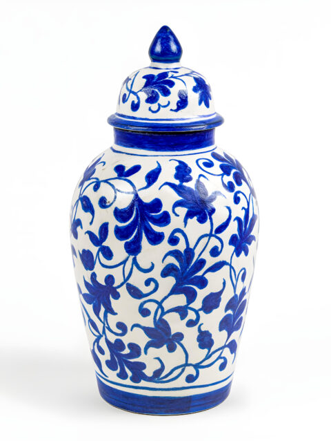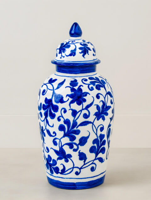 Classic Blue Ceramic Floral Temple Jar HP-1045
