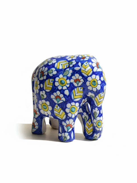 Hand Painted Ceramic Blue Floral Elephant Statue HP-1059