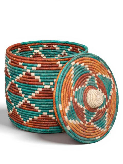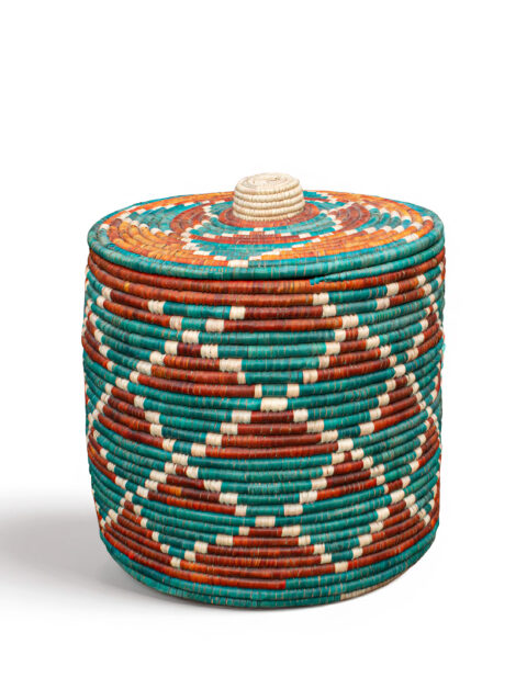 Hand Woven Laundry Basket with Geometric Pattern LB-1042