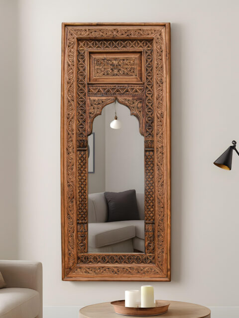 Handmade Full-Length Mirror with Hand Carved Wood Frame WM-1005