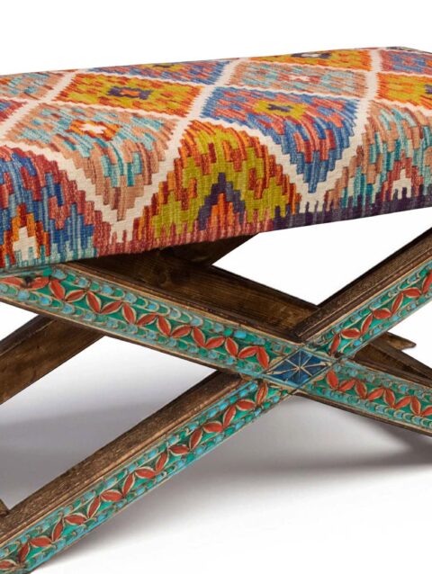 Handmade Kilim Upholstered Bench with Painted Base XT-1025